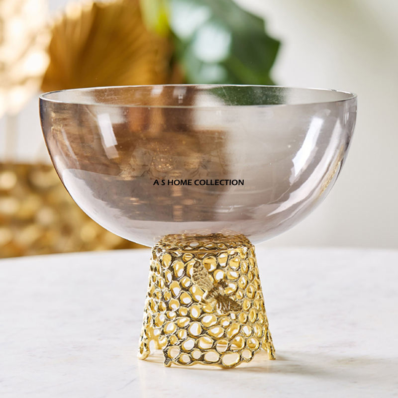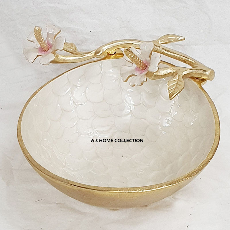 Top Trending Easy Clean Food Grade Metal Nut Bowl Stainless Steel Aluminum Metal Fruit Dish Dining Serving Flower Design Stand