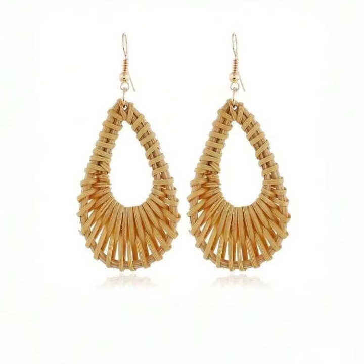 Top Trending Eco-Friendly Lightweight Stainless Steel Hoop Earrings Bohemian Design Ladies Chic Summer Style Vietnam Rattan