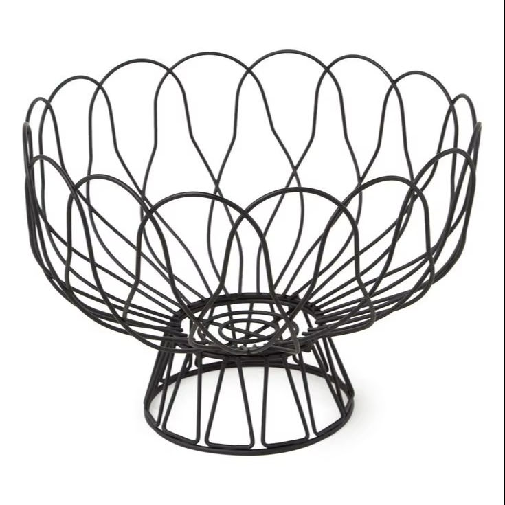 Panier de rangement pour fruits ou légumes tendance pour la cuisine à domicile, forme arrondie, panier en métal recouvert de poudre noire
