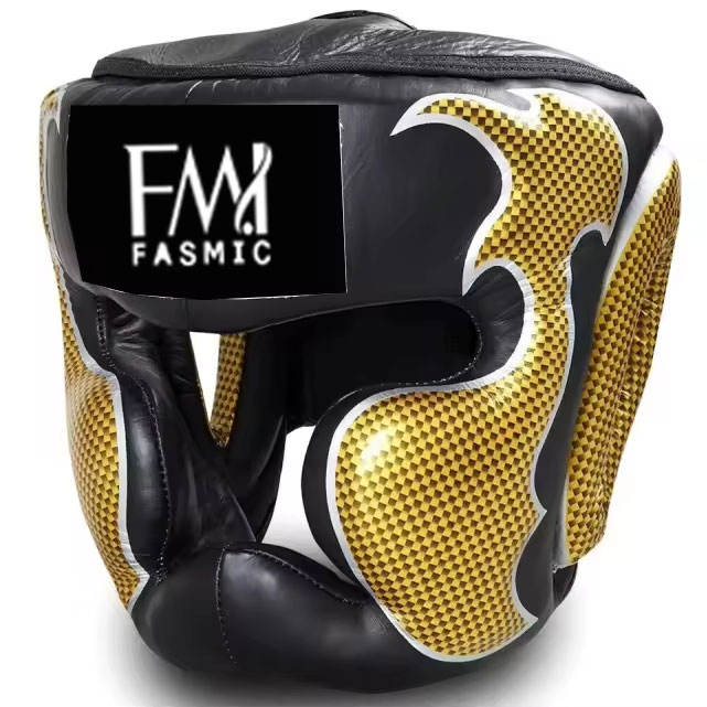 Équipement de tête de boxe en cuir véritable haut de gamme avec casque de protection de tête de boxe d'emballage personnalisé pour hommes