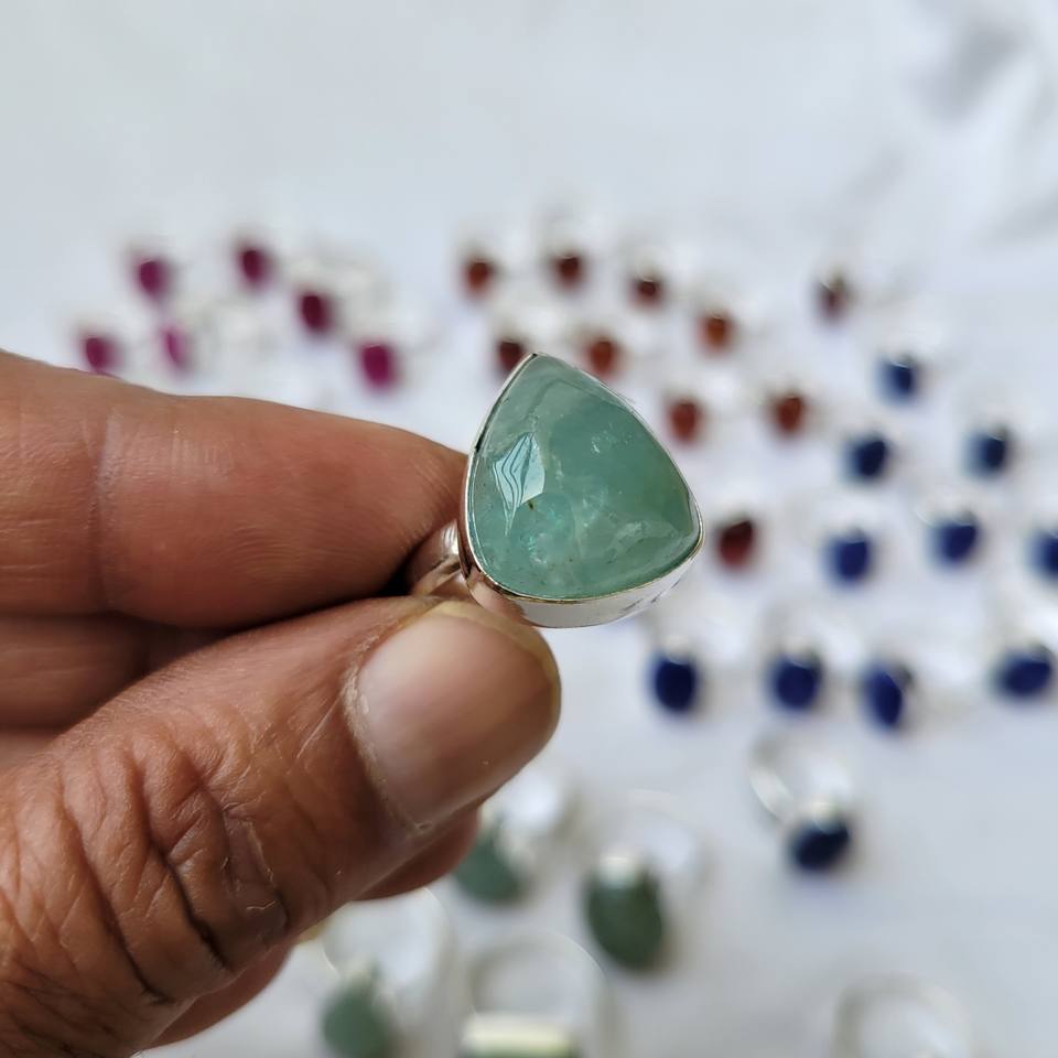 Nom du produit:Bague avec pierre précieuse aigue-marine