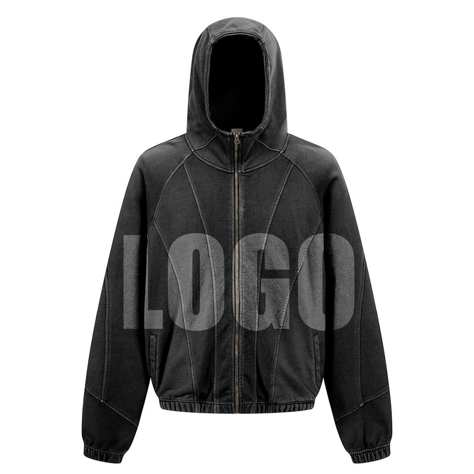 Sweat à capuche tendance style balaclava, demi-masque ninja, 430 g/m², 100 % coton, ample, effet délavé à l'acide, fermeture éclair