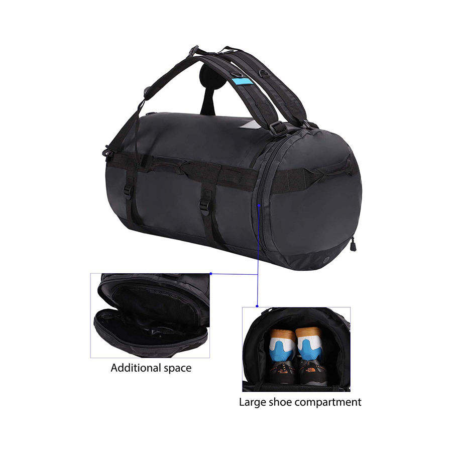 Sac de sport et de voyage tendance en cuir et toile, grand format, robuste, imperméable, noir, personnalisable