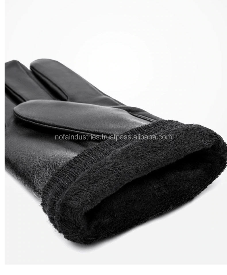 Top Trending Men Genuine Sheepskin Leather Gloves Autumn Winter Warm Touch Screen Full Finger Black Gloves