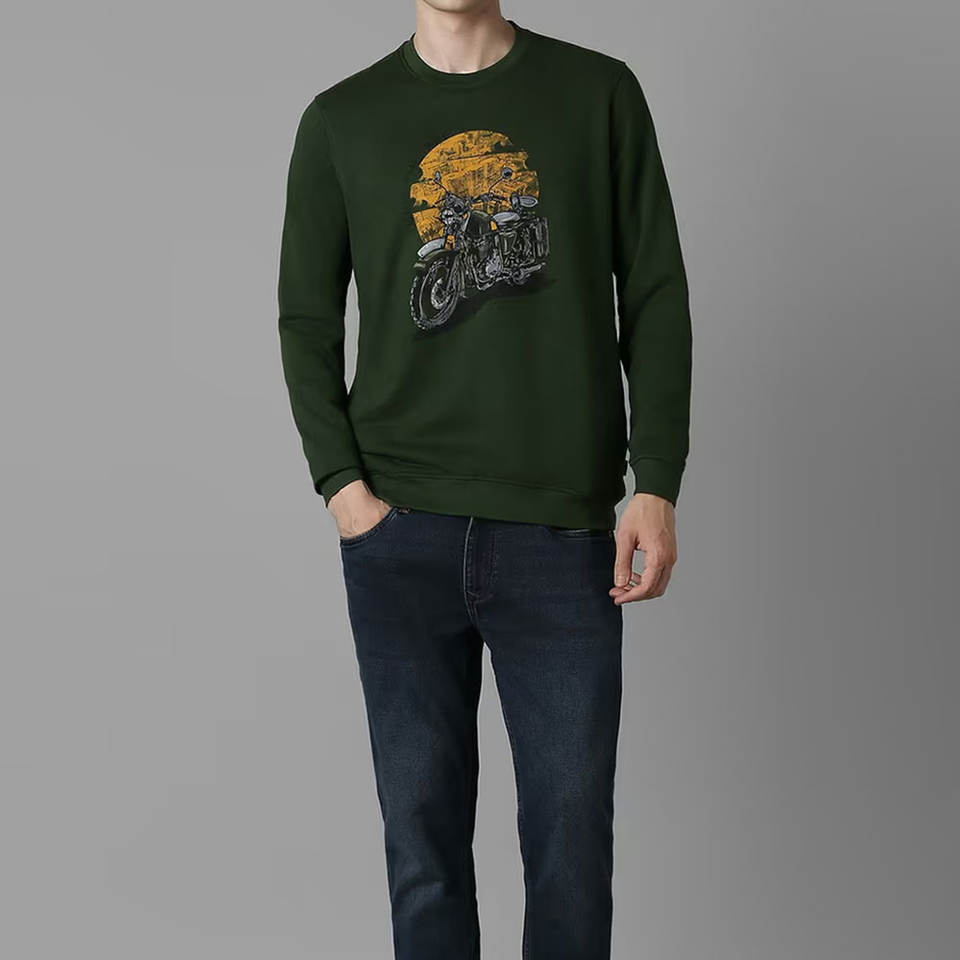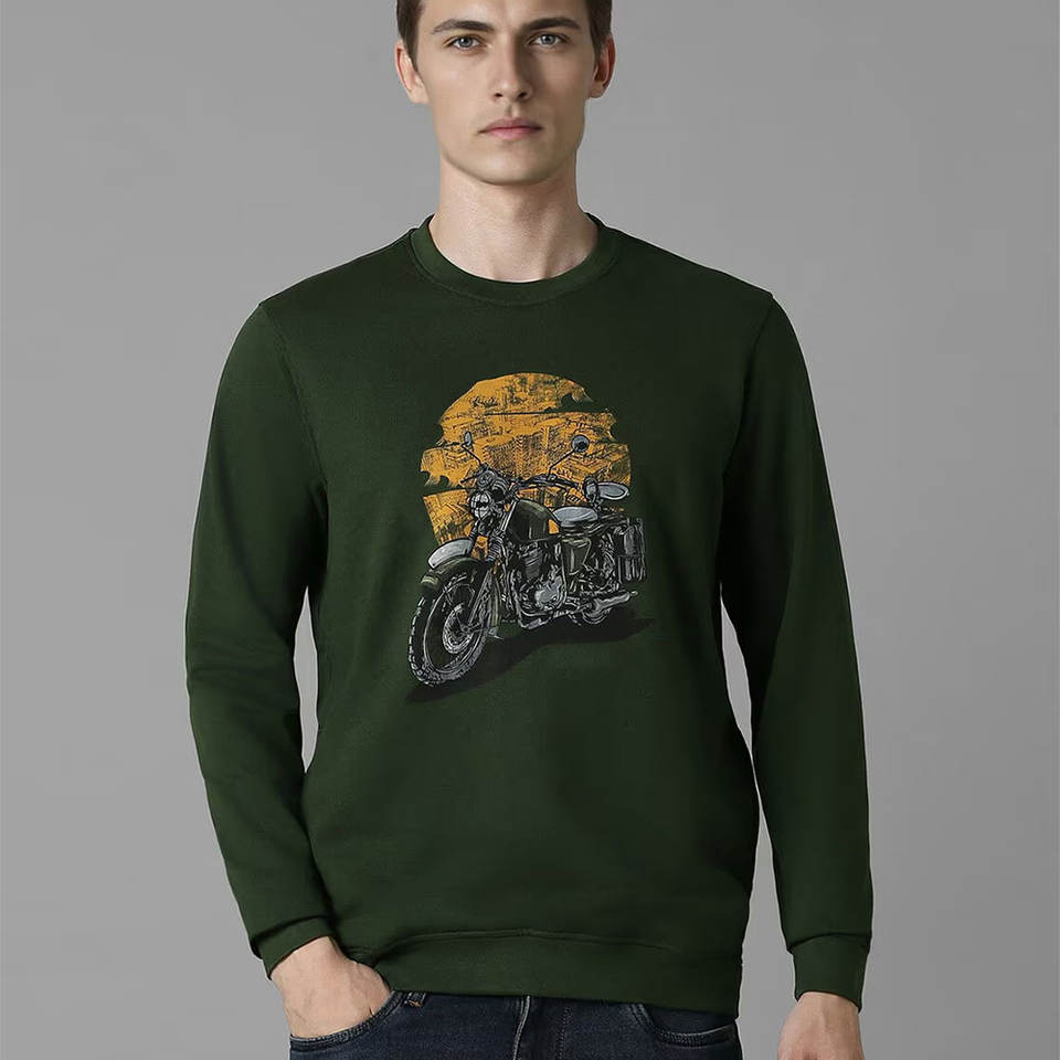 Sweat-shirt moto homme tendance vert foncé en coton avec motif vintage – Qualité supérieure, vente en gros, mode 2026