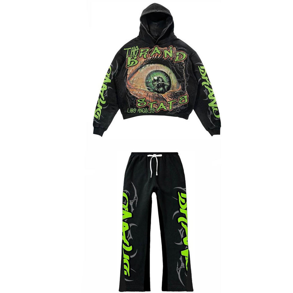 Survêtement à capuche évasé pour homme, tendance, nouveau design, en molleton technique en coton, effet délavé à l'acide, avec logo personnalisé et impression sérigraphique