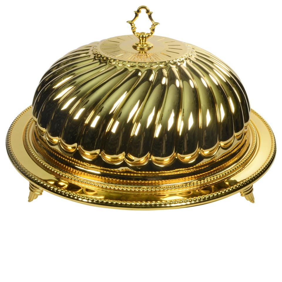 Support à gâteau tendance en métal doré avec couvercle en forme de dôme design pour mariages, anniversaires, support à gâteau au design luxueux