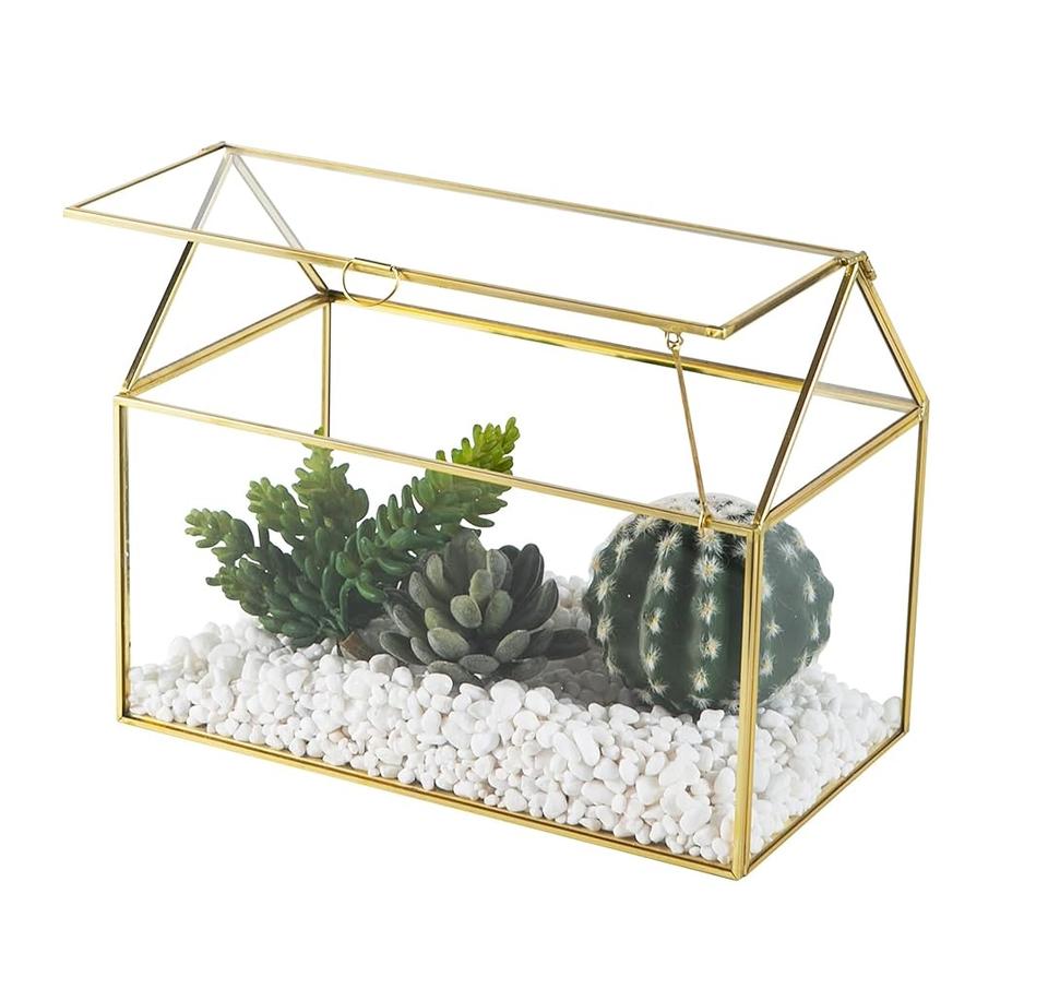 Vase en verre de bureau de conception moderne avec cadre en métal pour le verre de terrarium de table de mariage pour les plantes.