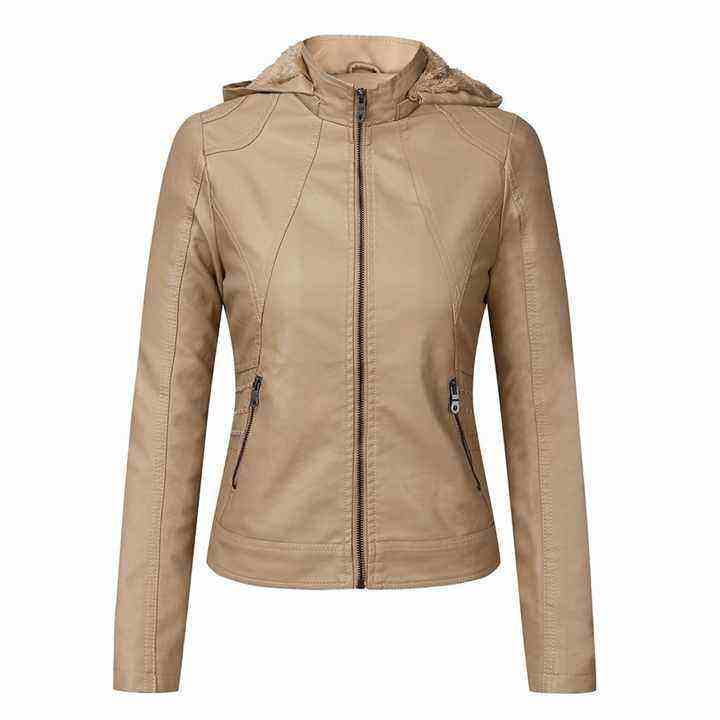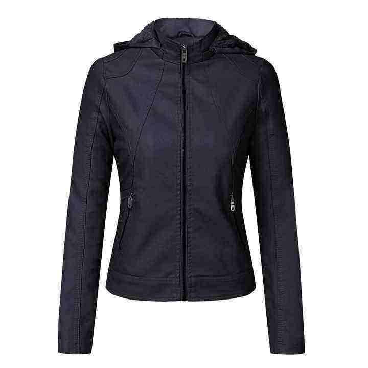 Veste en cuir d'hiver tendance pour femmes, coupe-vent, manches longues, design élégant, col à capuche.