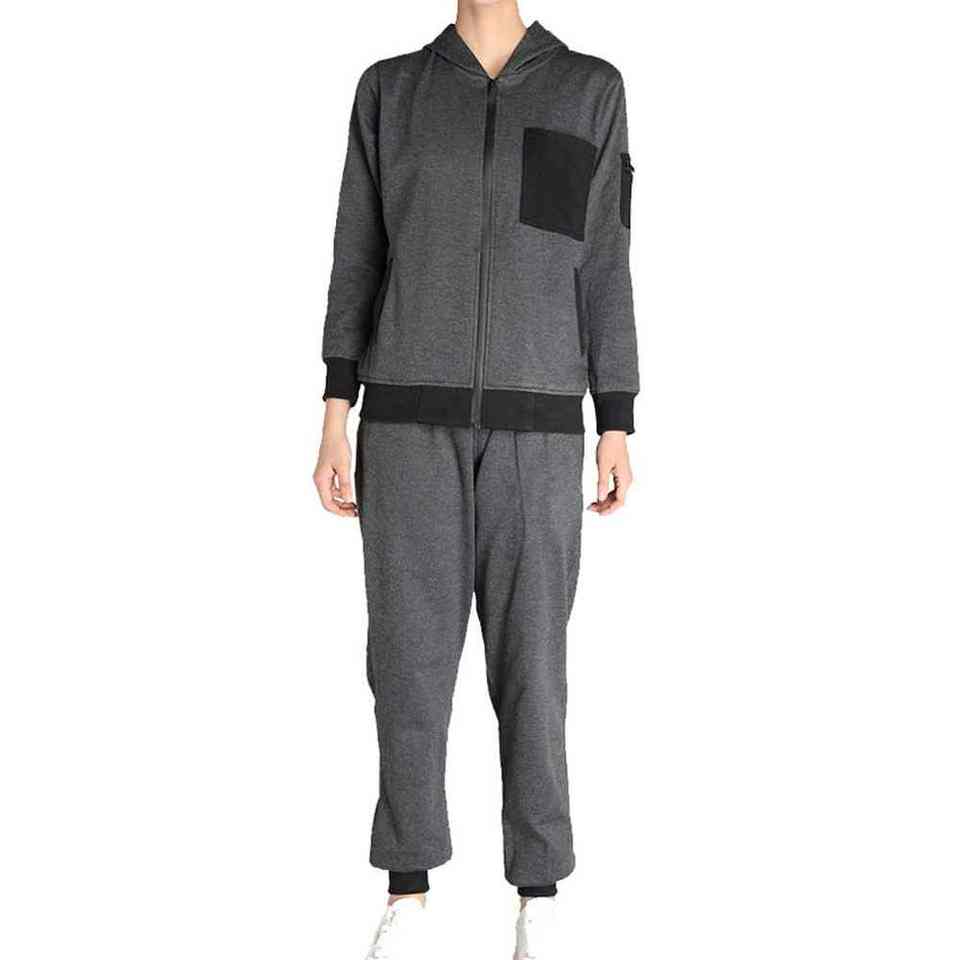 Survêtement femme haut de gamme avec logo personnalisé survêtement femme en tissu léger 100% coton poche avant zippée couleur grise