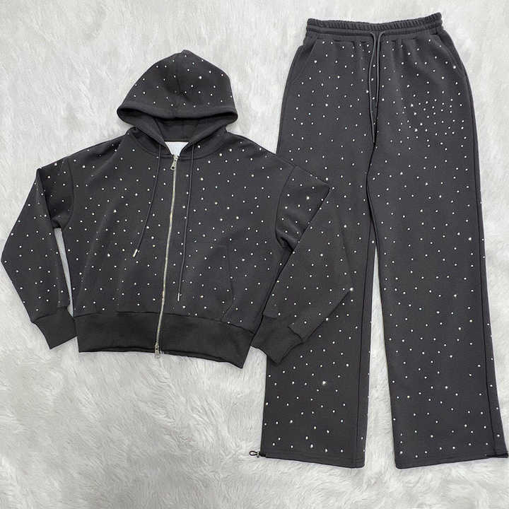 Survêtement pour femmes entièrement personnalisé OEM avec strass, design exclusif, matière respirante pour l'hiver, prix avantageux