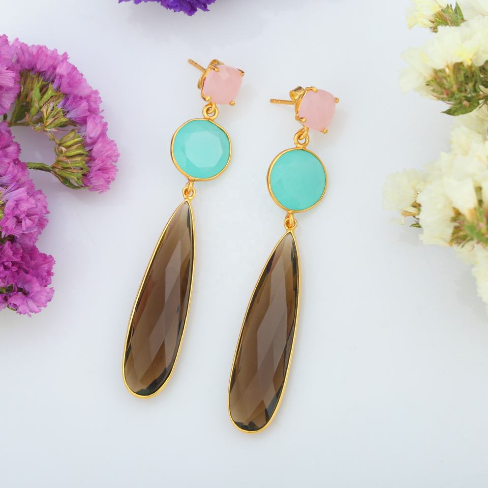 Top à la mode nouveauté rose rose et Aqua calcédoine quartz fumé boucles d'oreilles bijoux pour femmes et filles