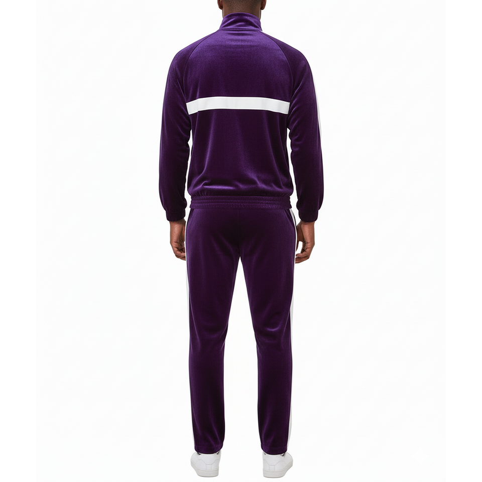 Survêtements violets tendance, nouveau design, haute qualité, imprimé color block, 100% coton, style panneau en velours