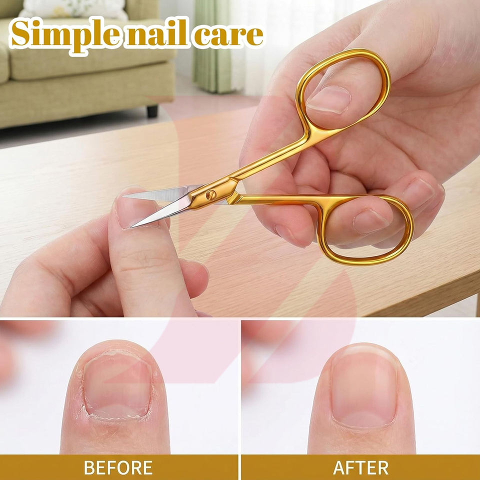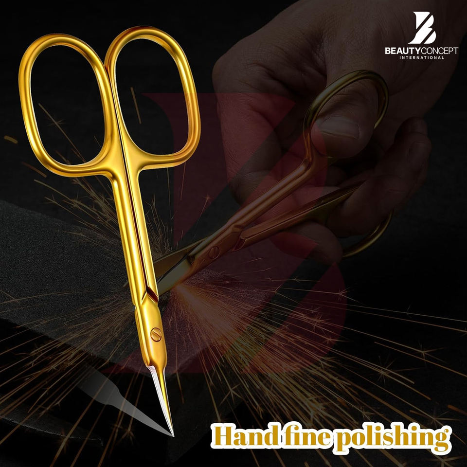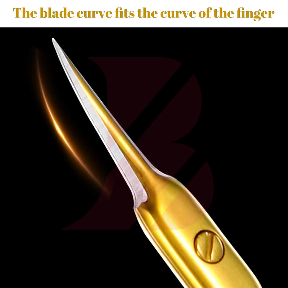 Produit tendance de couleur dorée, outil de soin personnel, ciseaux à cuticules pour couper les peaux mortes, lame droite et tranchante, personnalisation possible.