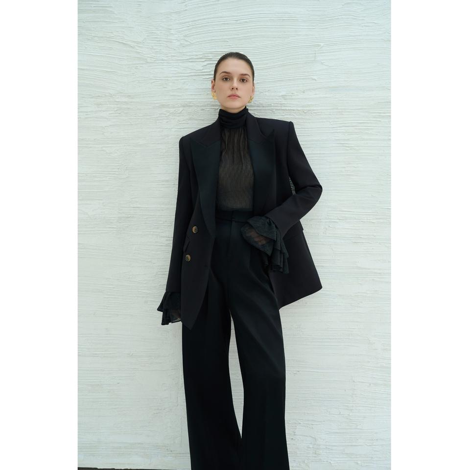 Top Trousers Straight-leg Women's Casual Pants WIDE LEG PANTS Mison Elegant Straight Double Front Pleats Satin 2-pleated Pants