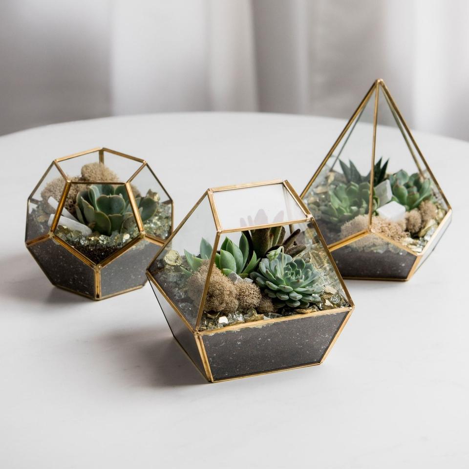 Mini terrarium géométrique en verre, ensemble de terrariums dorés, pot de fleurs en verre, vase, bol, boîte de présentation, décoration - Vente en gros
