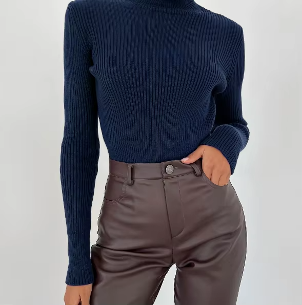 Top femmes élastique mince pull à col roulé pull hiver Polyester/coton séchage rapide respirant nouvelles dames confortables