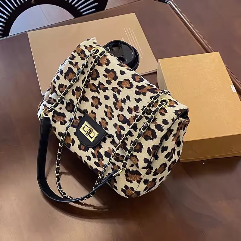 Top Women's Tote Bags Retro Leopard Print Soft Plush Single Shoulder Bag Design Autumn Winter Fashion Women Shopping Handbags