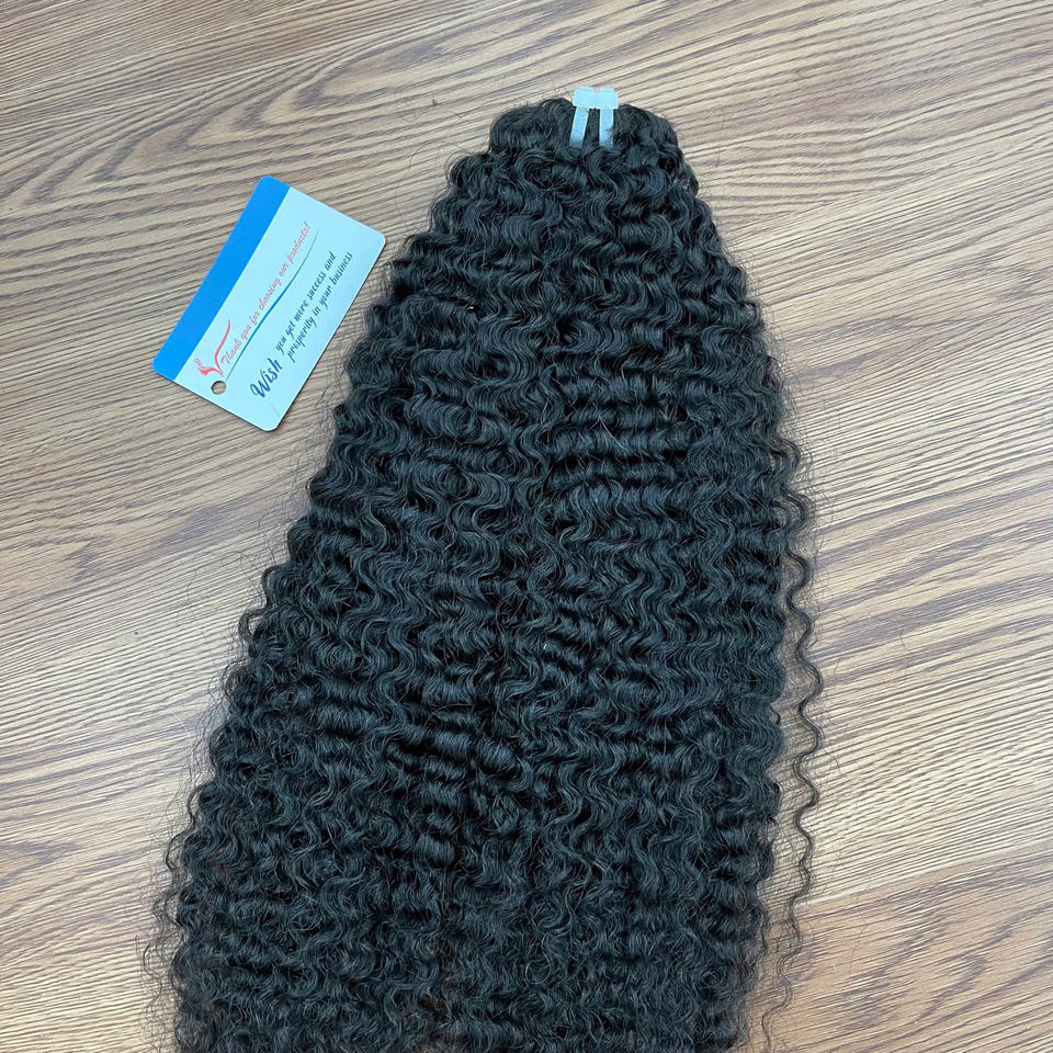 Top curly human hair extension Vietnamese curly hair natural black color machine weft high quality ready to ship