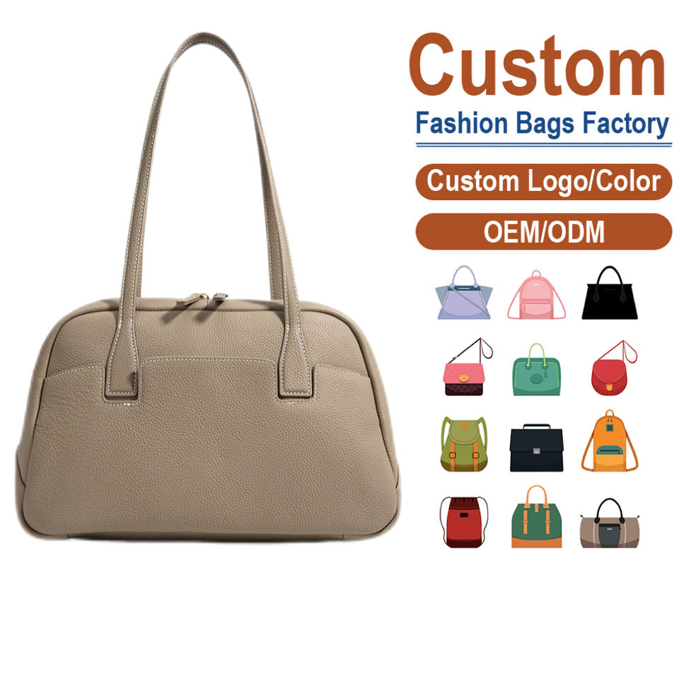 Sac de bowling en cuir de vachette pleine fleur gris éléphant, grande capacité, sac de travail à bandoulière et à main, personnalisation OEM