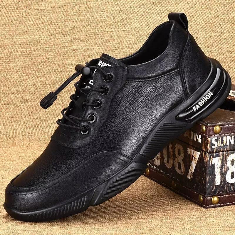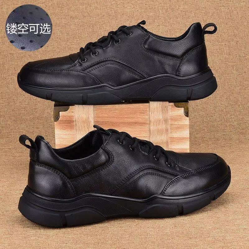 Couche supérieure en cuir de vachette chaussures de sport décontractées à la mode pour hommes, durables et antidérapantes, adaptées à la course.