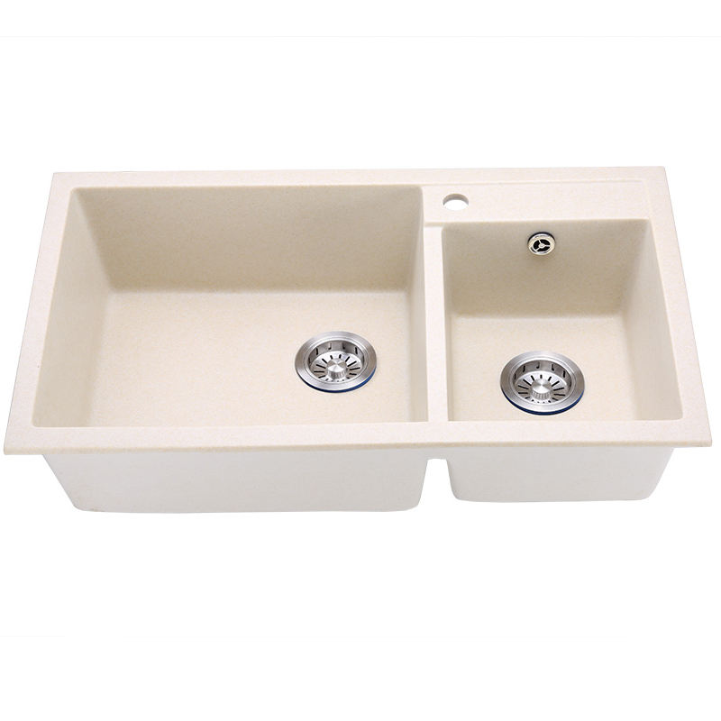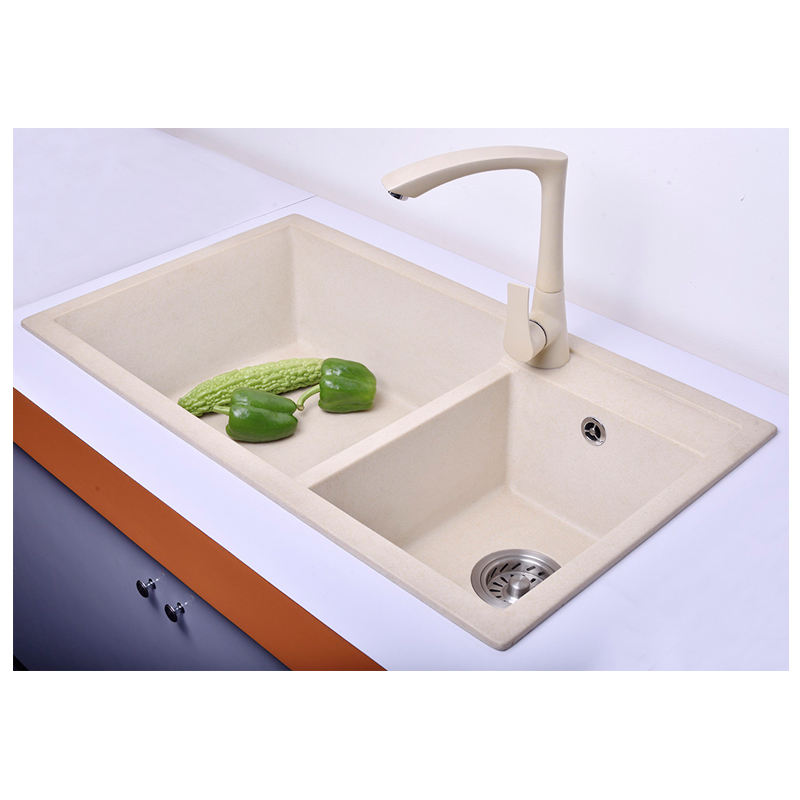 Double cuvette montée sur le dessus dans les éviers en pierre de granit de quartz composite de table de cuisine