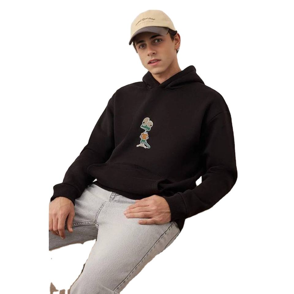 Sweat-shirt à capuche pour homme de haute qualité, manches régulières, hiver, uni, teint, 100% coton, noir foncé, bon prix