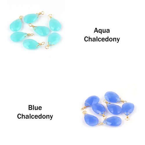 Top Quality Checker Cut Blue Chalcedony Single Bail Connectors Gold Plated Wire Wrapped Gemstone Connectors for Making Jewelry