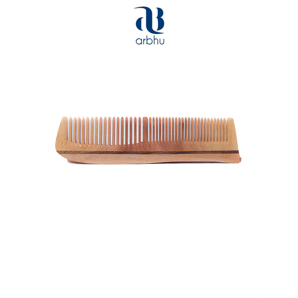Peigne et brosse à cheveux en bois de neem naturel de qualité supérieure | Dents larges avec bords arrondis pour le massage du cuir chevelu