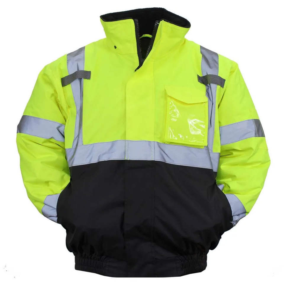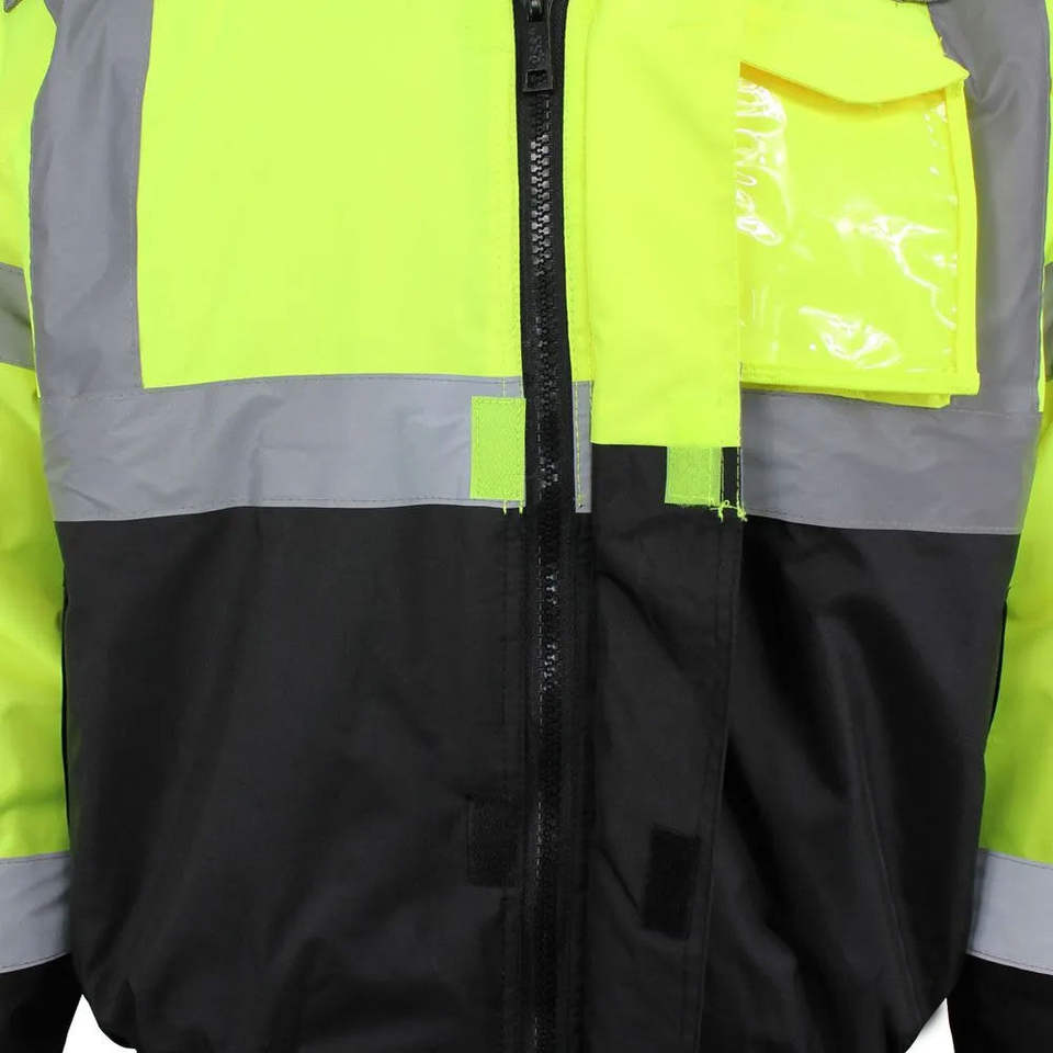 Veste de travail d'hiver de haute qualité en polyester, bomber réfléchissant de sécurité, vêtements de travail, capuche dissimulée, rembourrée, imperméable