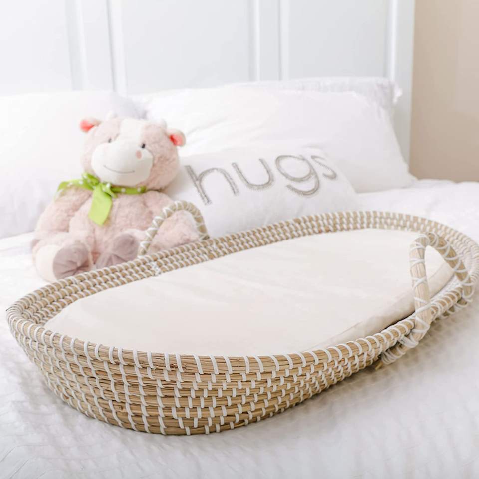 Top seller baby change seagrass basket newborn nursery natural straw changing baskets for babies