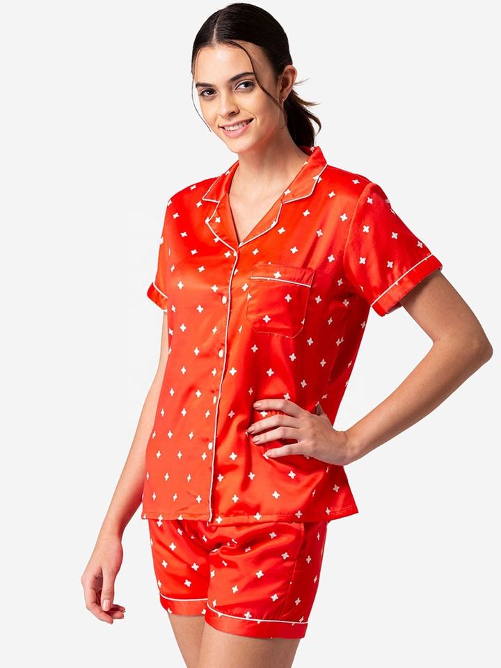 Pyjama en soie de couleur unie pour femmes, ensemble short en satin, vêtements de nuit sexy, tenues amples, coupe ample, 2020