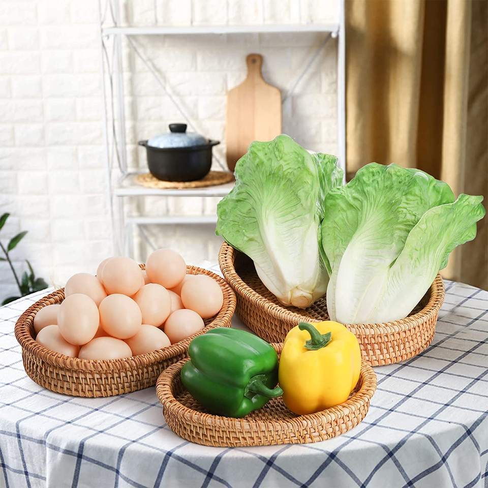 Top shopping paniers à pain en rotin, paniers à fruits tissés à la main naturels pour garde-manger de cuisine, plateau à pain en osier ovale empilable