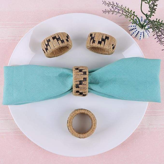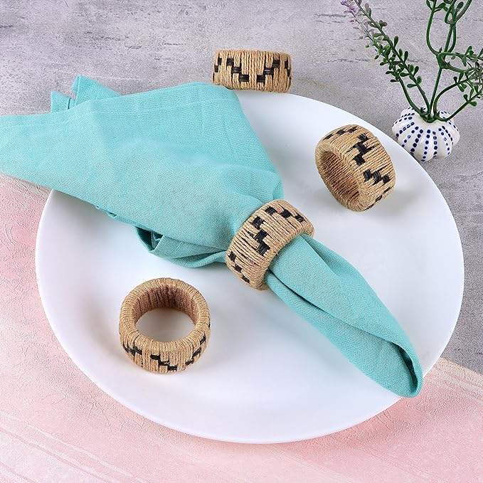Top liste des sponsors ronds de serviette décoration de table d'hôtel ronds de serviette tissés à la main maison et cuisine anneau de tissu ensemble de 4