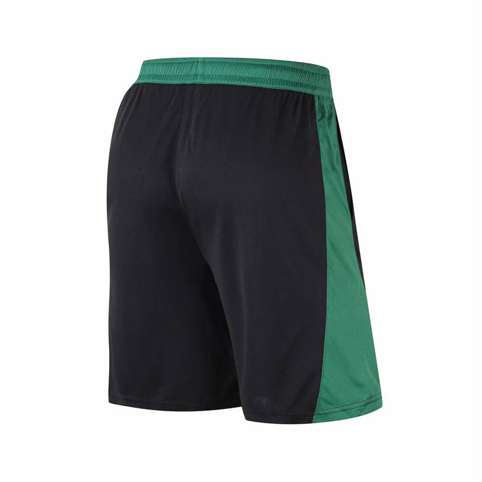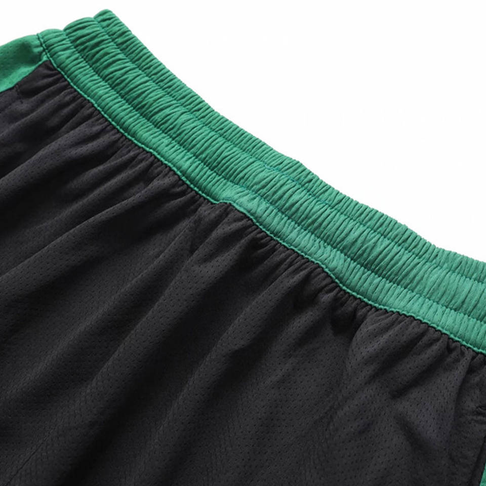 Shorts de basket-ball noirs personnalisés avec des panneaux latéraux verts, tissu en maille respirant, taille élastique, vêtements de sport pour l'entraînement athlétique