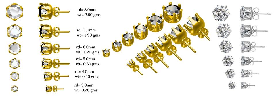 Topcarat 2CT Rond Simulé Diamant Rond Six Prong Vis Solitaire Boucles D'oreilles Saint Valentin Cadeau 18K Or Jaune Plaqué 925 Sil