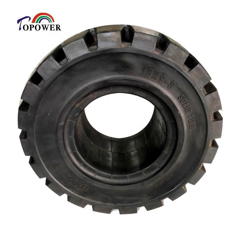 Pneu plein Topower 18*9-8 à design diagonale pour engins de génie civil, chargeurs, chariots élévateurs et excavatrices