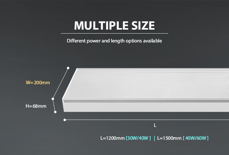 Caractéristiques:Diffuseur en PMMA prismatique, UGR<19, Puissance et interrupteur CCT
