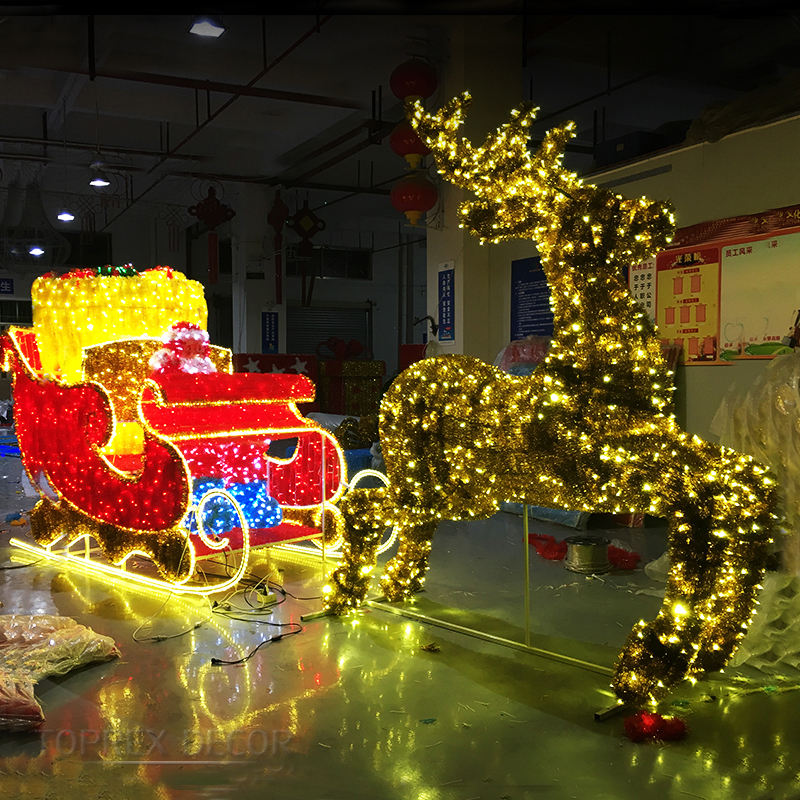 Décorations de Noël extérieures Toprex Decor, grand renne et traîneau 3D, lumières LED, imperméables, décorations de fêtes commerciales, fabrication industrielle