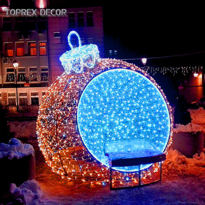 Toprex Decor Grande boule de lumière de Noël commerciale extérieure LED Décorations de village géantes illuminées Matériau en PVC IP65