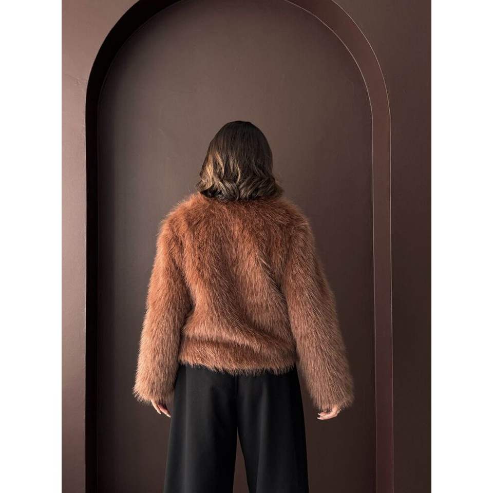 Manteaux boutonnés en fourrure de lapin Topshow en gros, longs, à simple boutonnage, en vison avec imprimé léopard, teints et lavés, technique de tissage