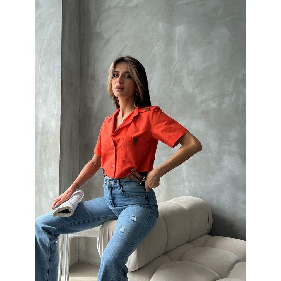Topshow Women's Blouses & Shirts with Orange Belt Detail-Wholesale Shirts