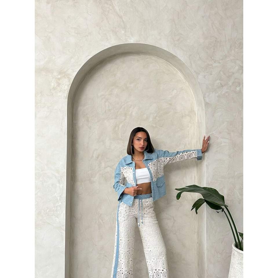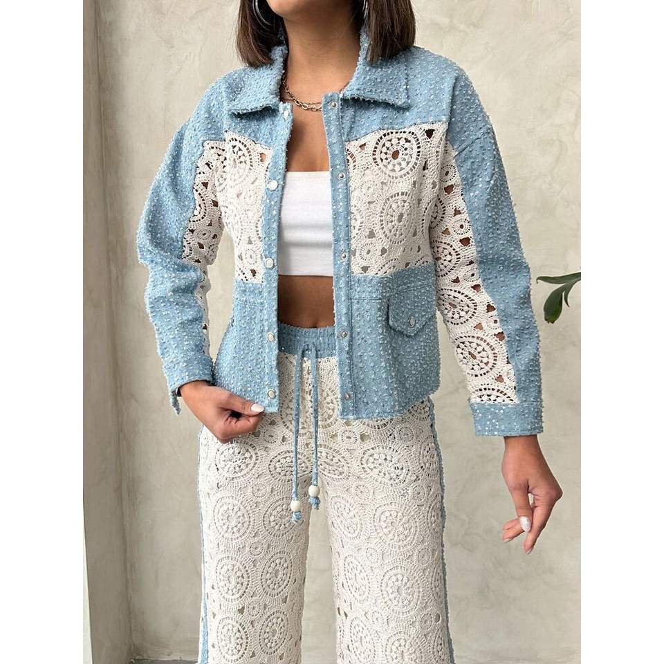 Topshow Women's Denim Jacket in Blue DSN1 Lace Detail Wholesale Coat