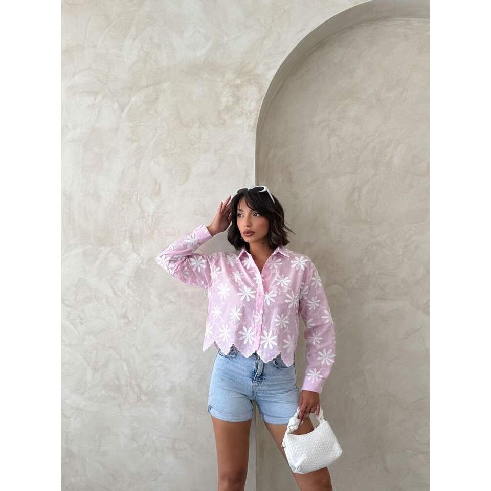 Topshow Women's Denim Sets Floral Embroidery Shirt Comfortable and Stylish