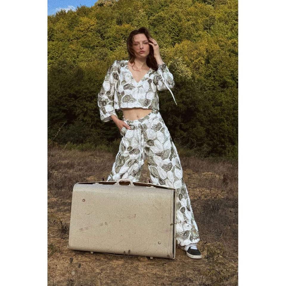 Chemisier à manches longues à col en V et motifs pour femme Topshow – Vente en gros de chemises tendance