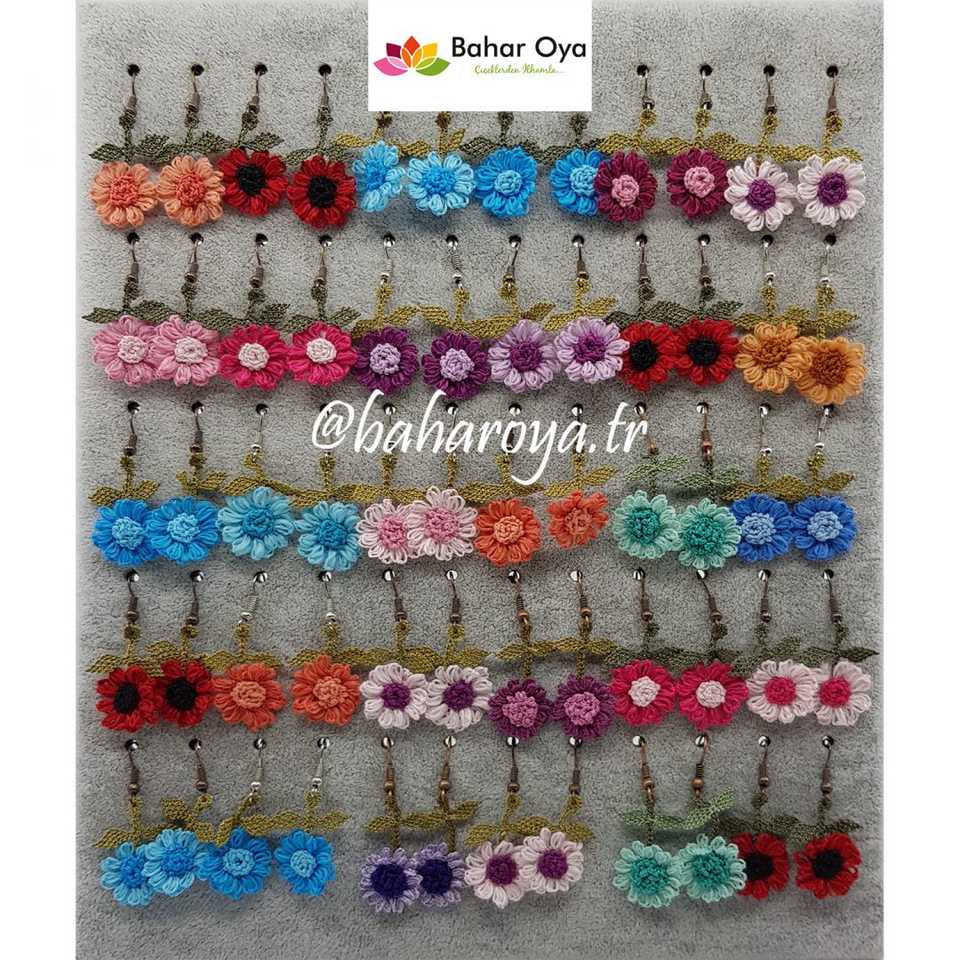 Boucles d'oreilles mode Toptan Ayçiçeği Küpe Renkli İğne Oyası (20 Ad)