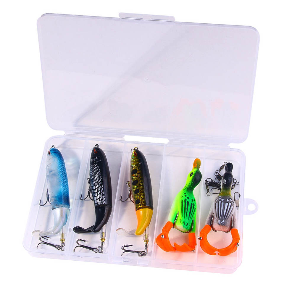 Ensemble de leurres de pêche en surface, popper rotatif, canard, appât artificiel dur, kit avec émerillons pour la pêche au black-bass, au brochet, en eau douce et en eau salée