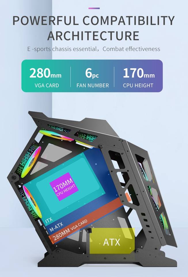 Ventilateur:Avant: 120mm * 2; Arrière: 120mm * 2; Haut: 120mm * 2