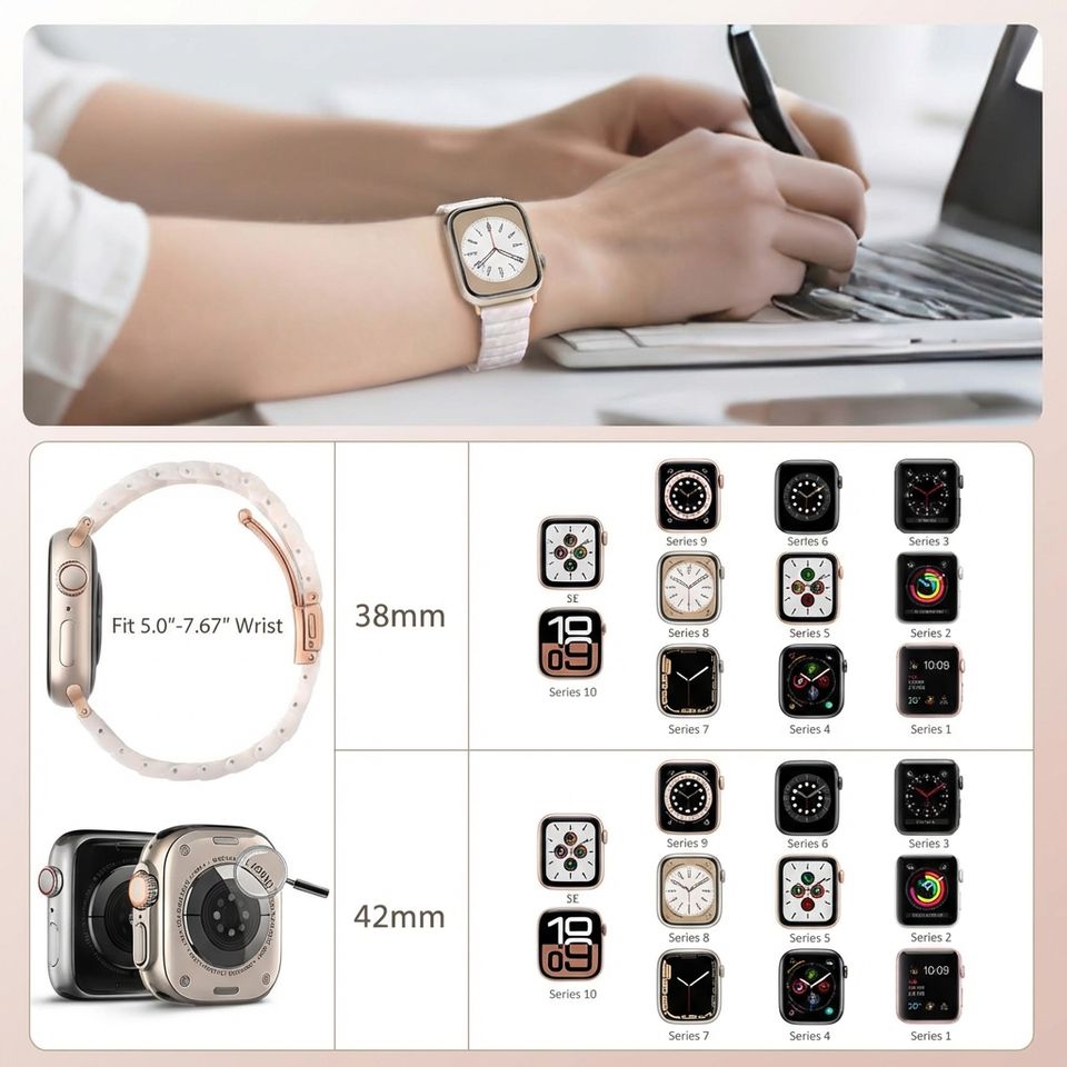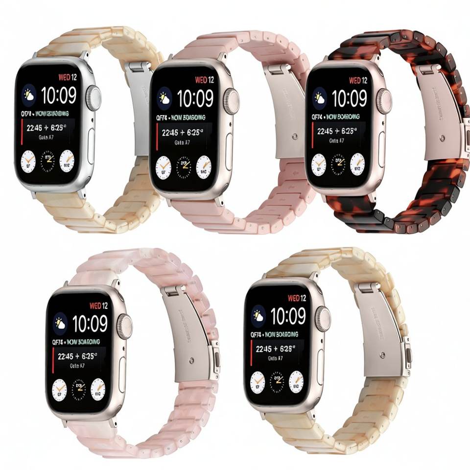 Bracelet de montre en résine écaille de tortue pour Apple Watch Series 11 10 9 8 7 6 38mm 42mm, bracelet léger au toucher chaud pour femmes
