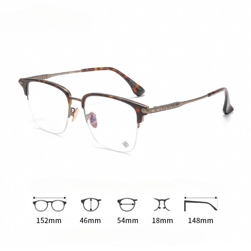 Tortoiseshell Large Face Wide Glasses Frame Myopia Semi-Rimless Eyeglasses